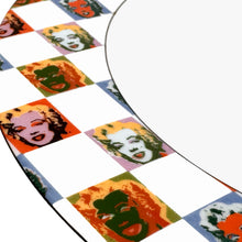 Authentic original fine china dinner plate featuring Warhol's 'Marilyn' in a checker-box pattern.
