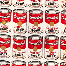 Though 'Campbell’s Soup Cans' resembles the mass-produced, printed advertisements by which Warhol was inspired, its canvases are hand-painted, and the fleur de lys pattern ringing each can’s bottom edge is hand-stamped. Warhol mimicked the repetition and uniformity of advertising by carefully reproducing the same image across each individual canvas. He varied only the label on the front of each can, distinguishing them by their variety. Warhol said of Campbell’s soup, “I used to drink it. I used to have the same lunch every day, for 20 years, I guess, the same thing over and over again.”