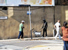 Banksy’s 'Choose Your Weapon' (also known as CYW) first appeared on a wall of The Grange pub, in Bermondsey, London, in 2010. Shortly after the stencil appeared on the street, it was boarded over. It then reappeared, framed and covered in Perspex. In August 2016, it was reported that the Perspex itself had been covered in posters and flyers obscuring it from view entirely. It is unknown if the work still exists in the same location, or if it is just obscured from view.