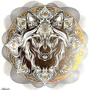 CHRIS SAUNDERS 'White Wolf Mandala' (2014) RARE Screen Print