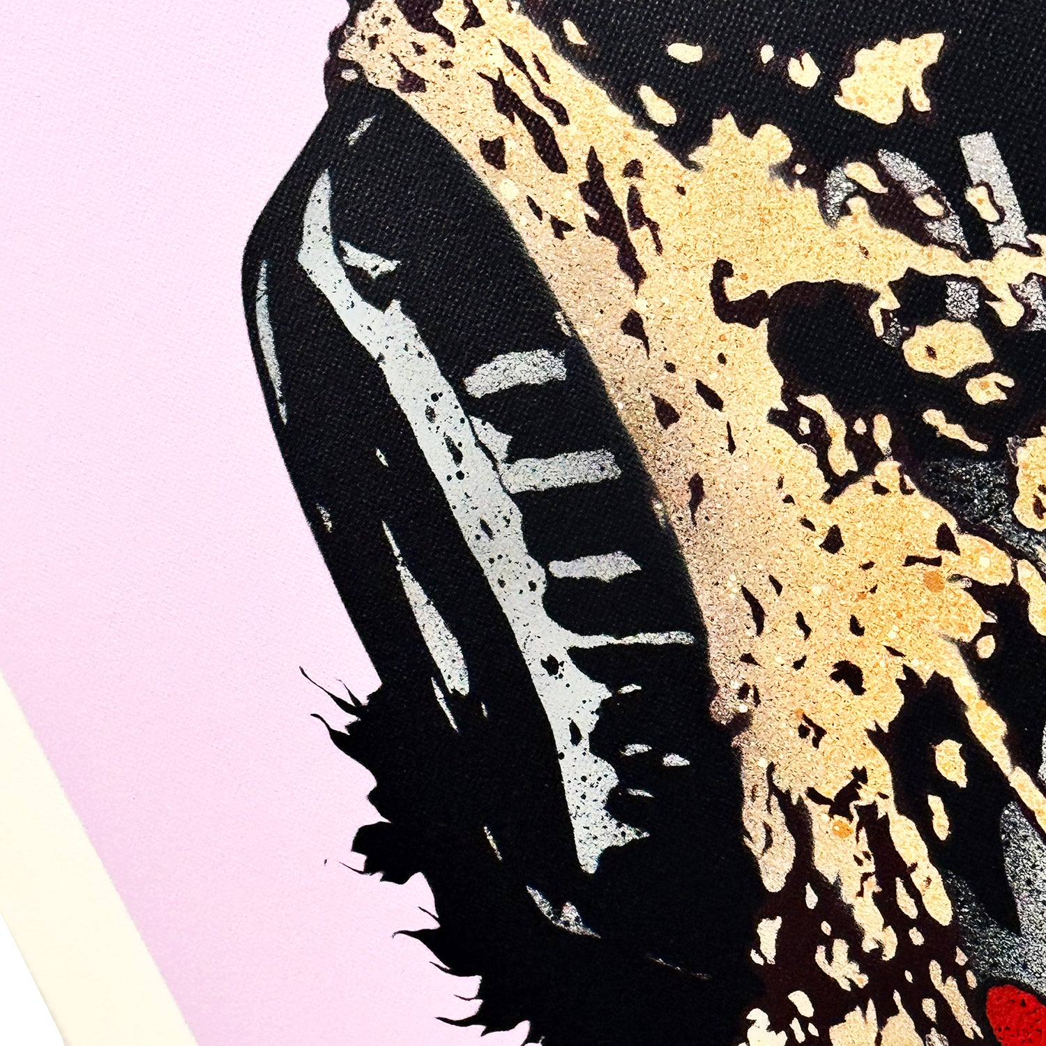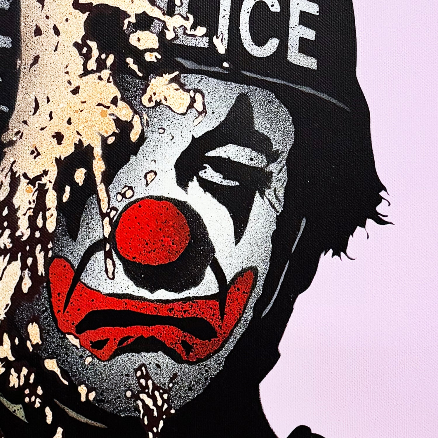 FAKE has been working on the streets for many years and started to put his art on canvas, paper, wood and glass about three years ago. However, this is not holding him back to hit the streets with his art on a regular basis, making him even Amsterdam’s most known stencil artist, both on the streets and on canvas.