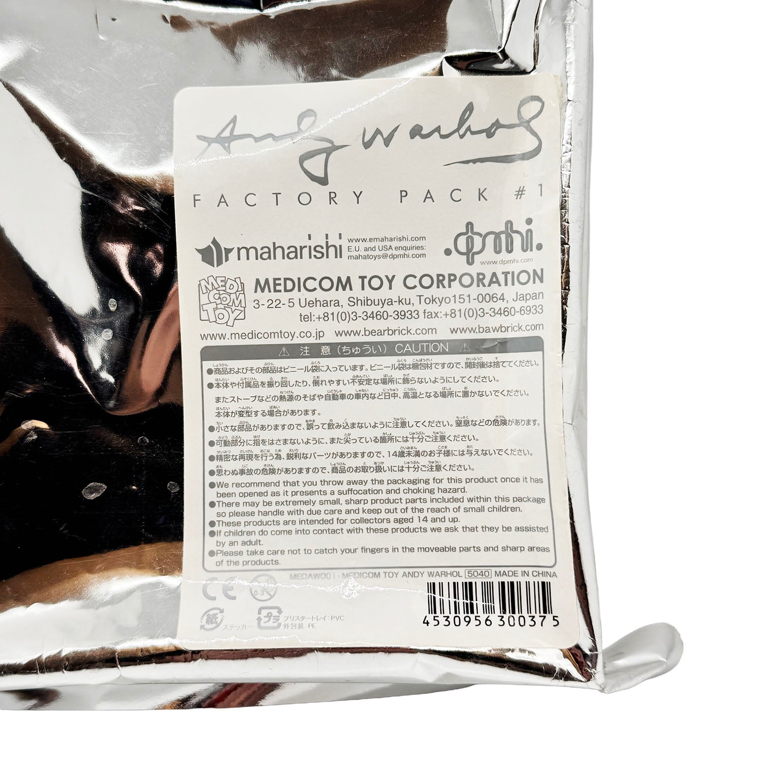 Medicom Toy dated, tamper-proof hologram decals on reverse.