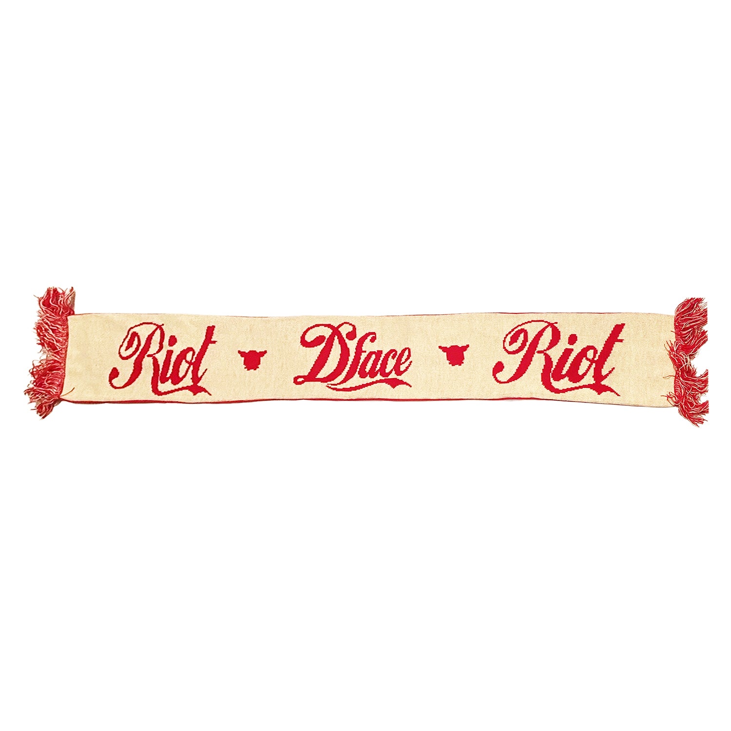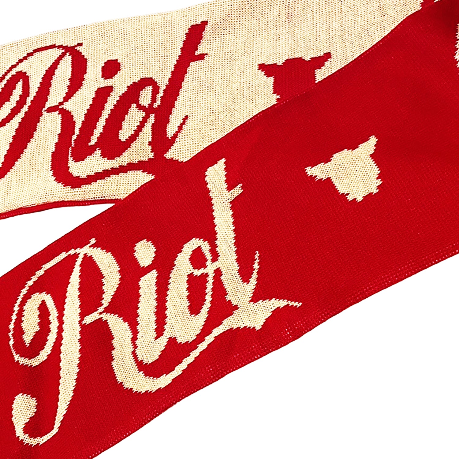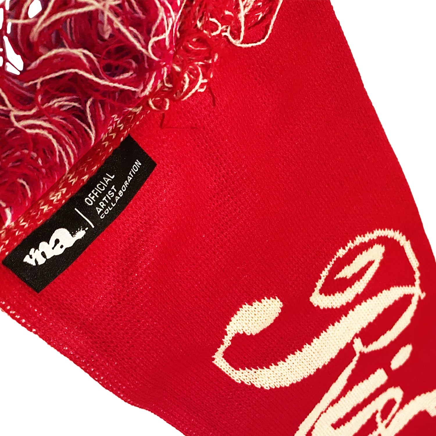 100% acrylic scarf with fringed ends and "Coca-Cola"-style font.