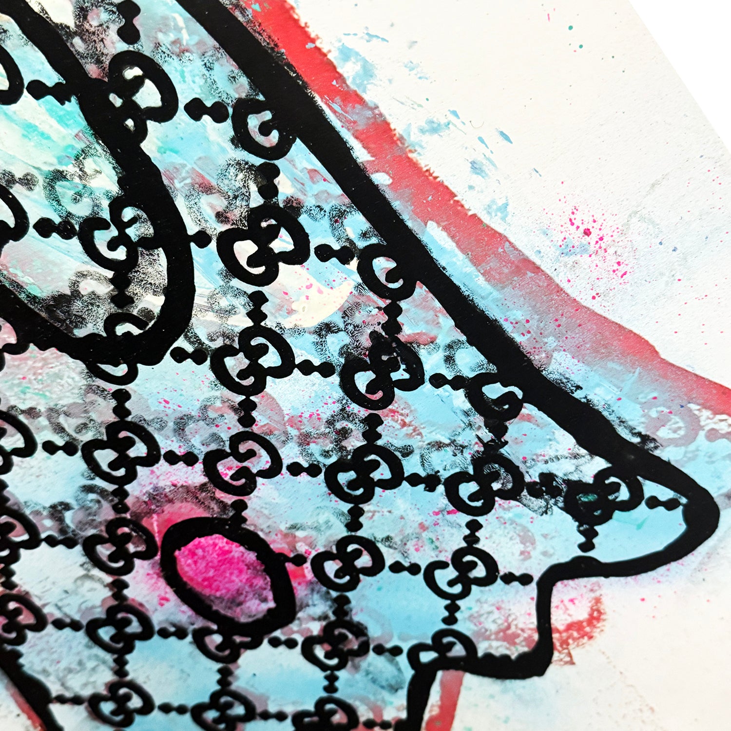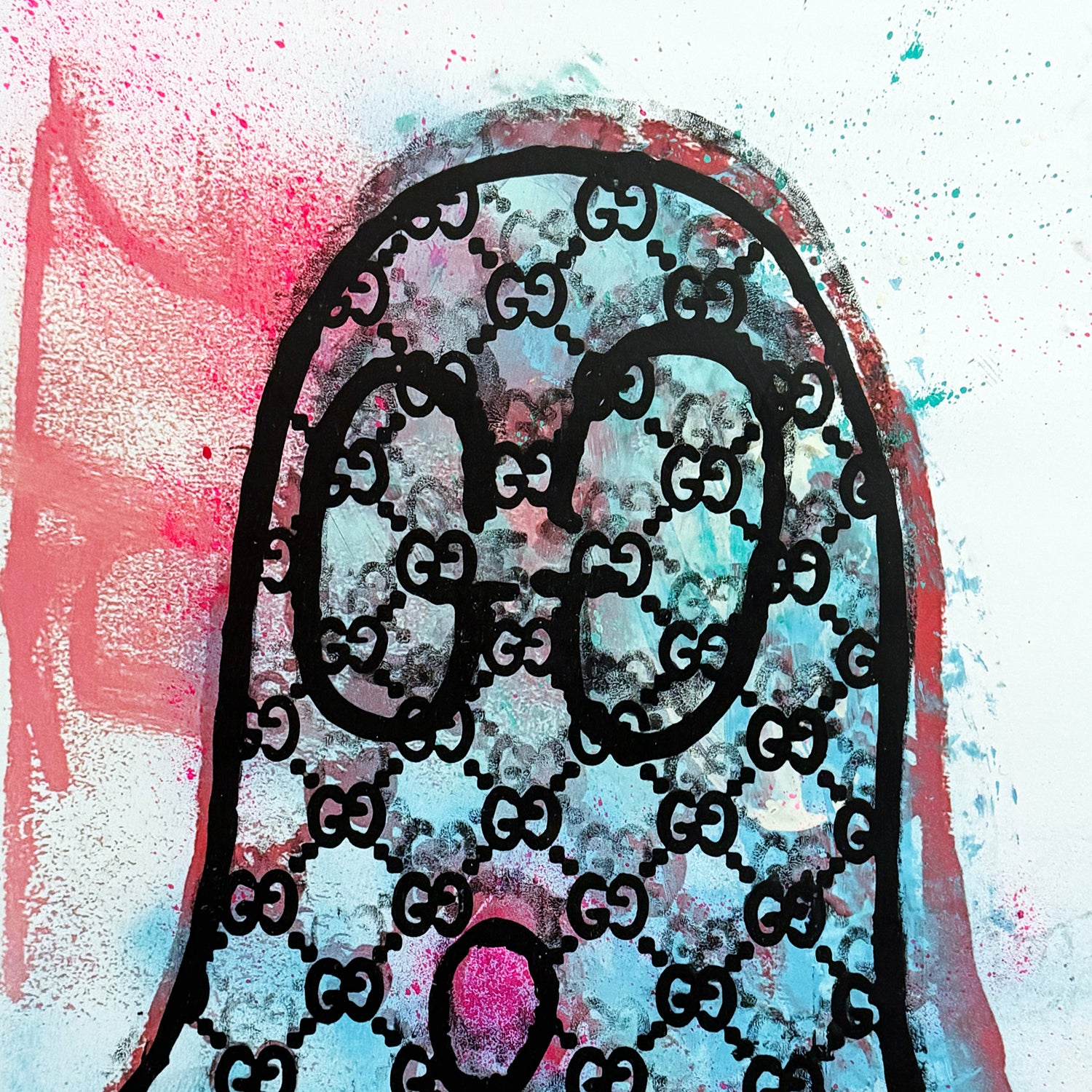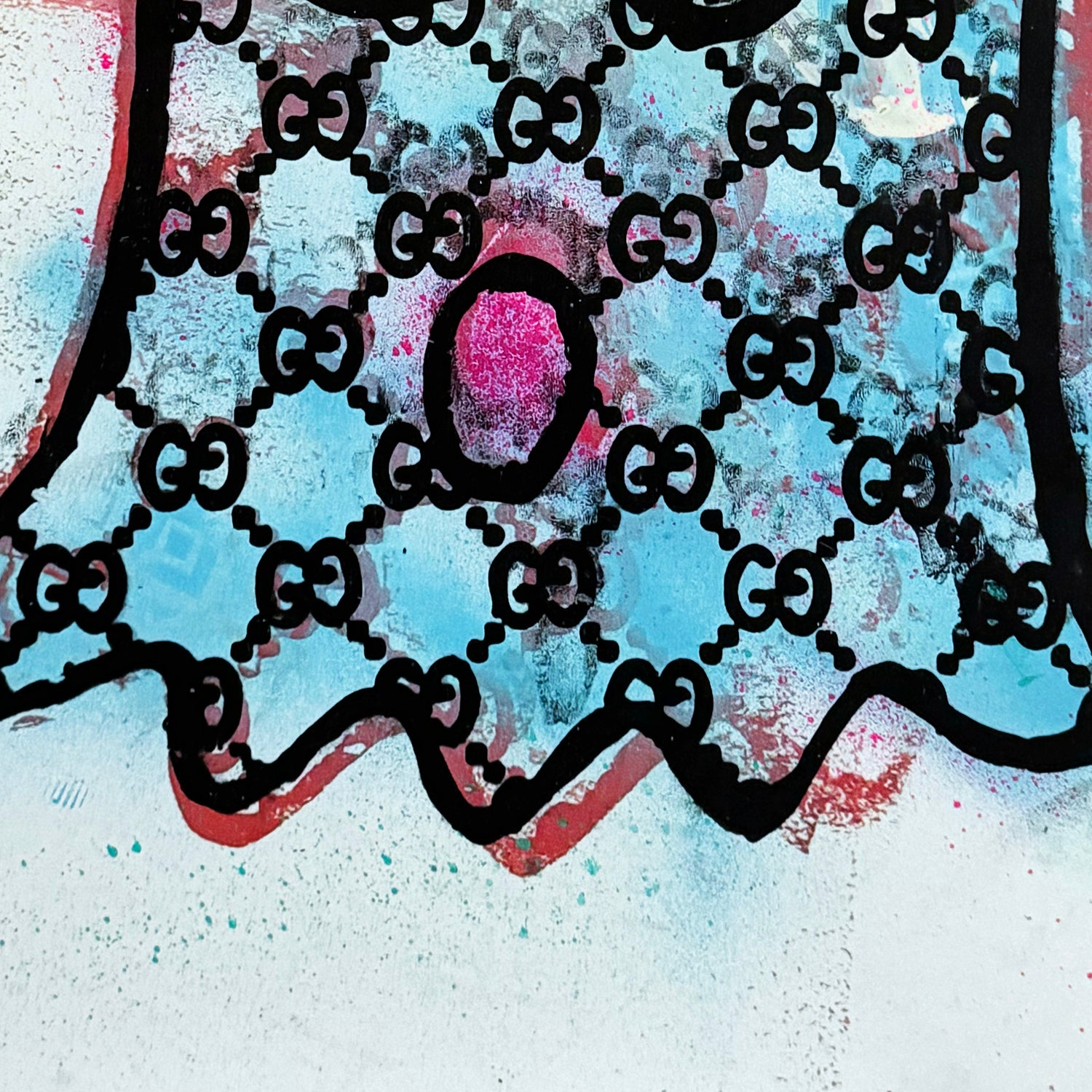 As one of the foundational images in GucciGhost’s oeuvre, the “Classic Ghost” represents the intersection of identity, branding, and contemporary culture. In Moon Mist, that symbol feels both familiar and elevated—distilled into a singular, collectible work that embodies the evolution of Trevor Andrew from street disruptor to globally recognized artist. For collectors, this is not just a print—it’s a unique, hand-finished artifact from a defining voice in modern pop and street art.