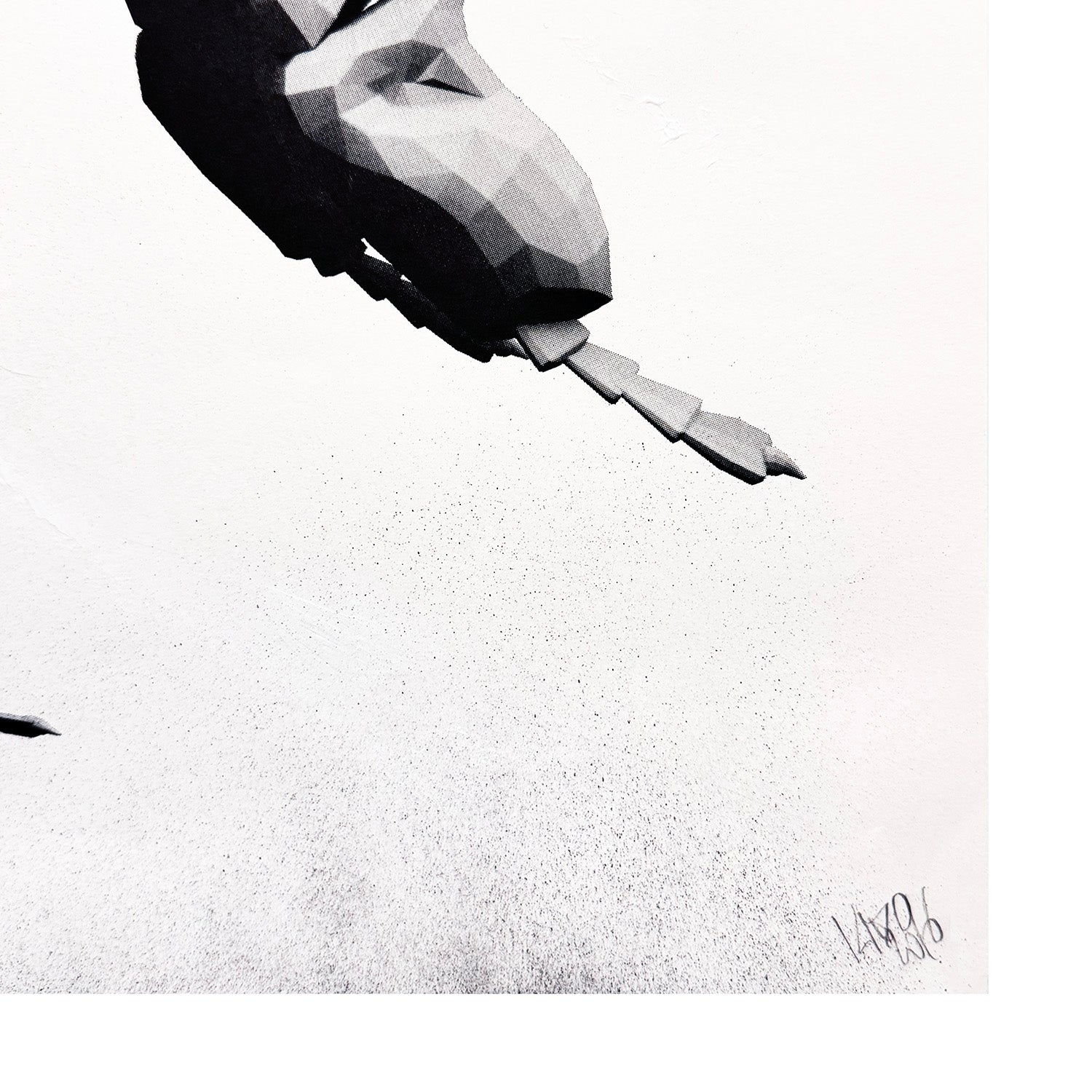 Hand Finished by the artist with acrylic, graphite and spray painting making each print unique.