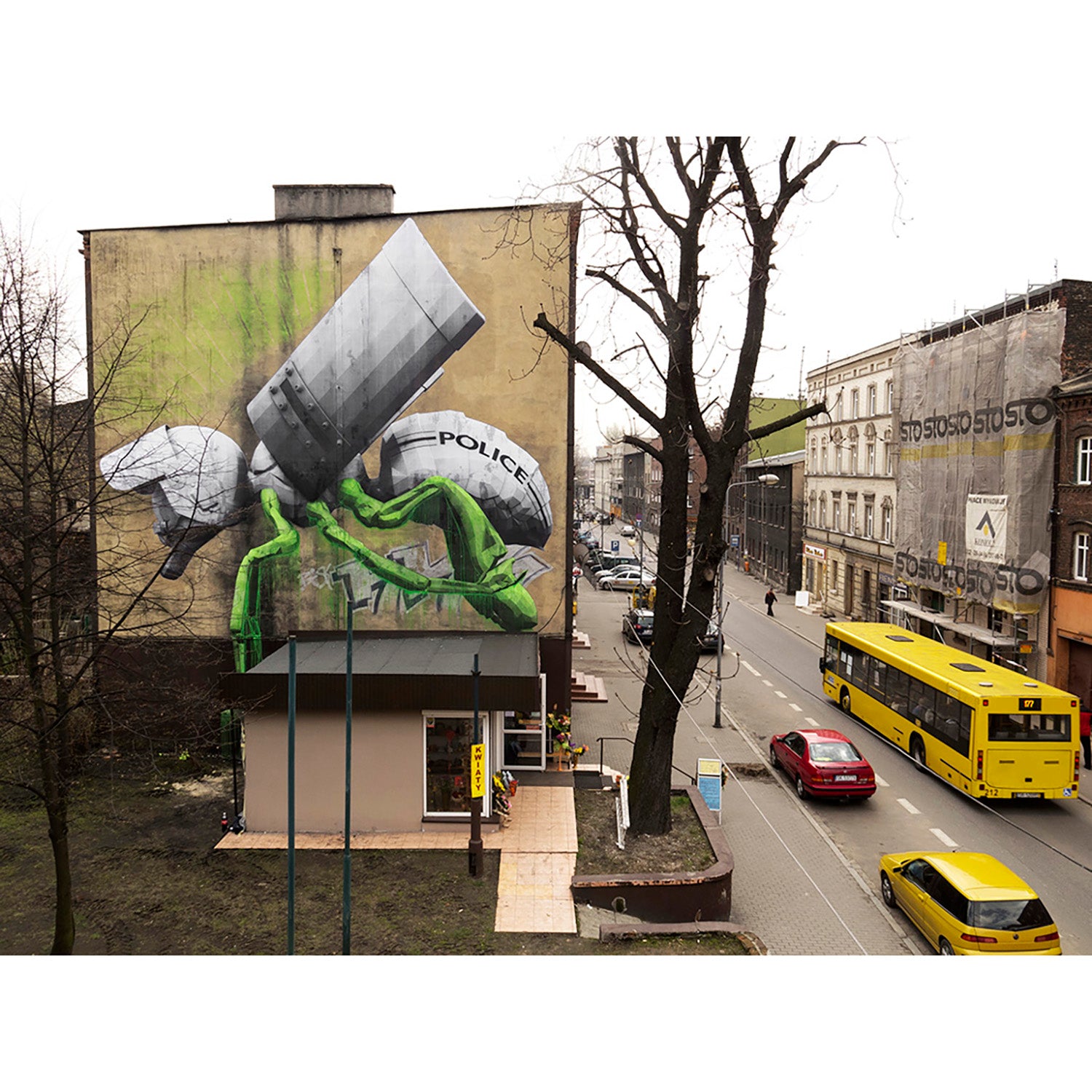 Drawn with the precision of botanical illustrations, Ludo's new order of hybrid organisms is both elegant and fierce. armoured vehicles spawn stag beetle horns; carnivorous plants bare rows of hunting-knife teeth; bees hover, hidden behind gas masks and goggles; automatic weapons crown the head of sunflowers; human skulls cluster together like grapes.