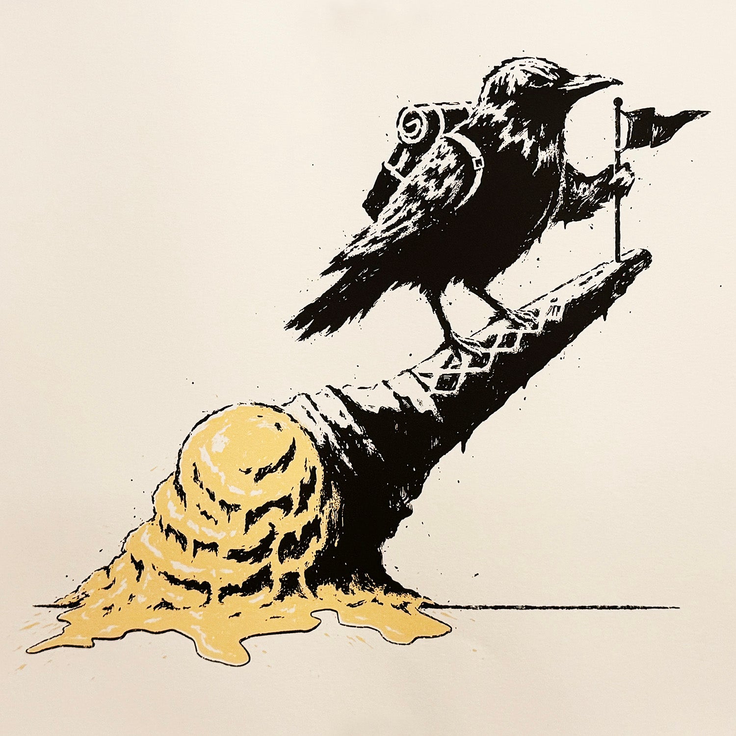 The artist's latest print with a commentary on global warming.