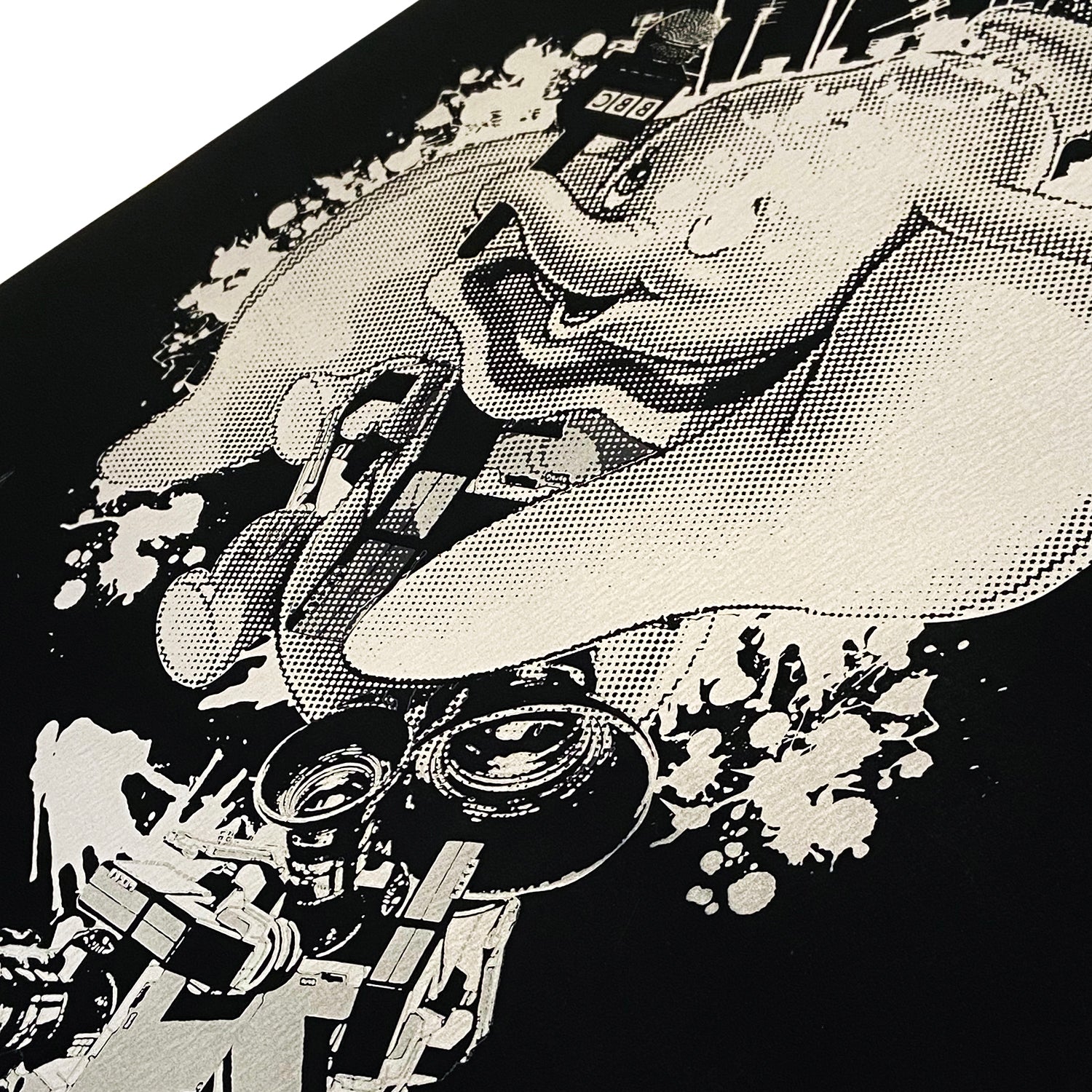 Screen print with "wacky inks" on black 300gsm Pilke fine art paper.