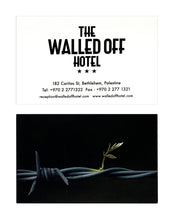 Original business card from the artist's world-famous (now closed) hotel in Bethlehem, West Bank, Palestine.