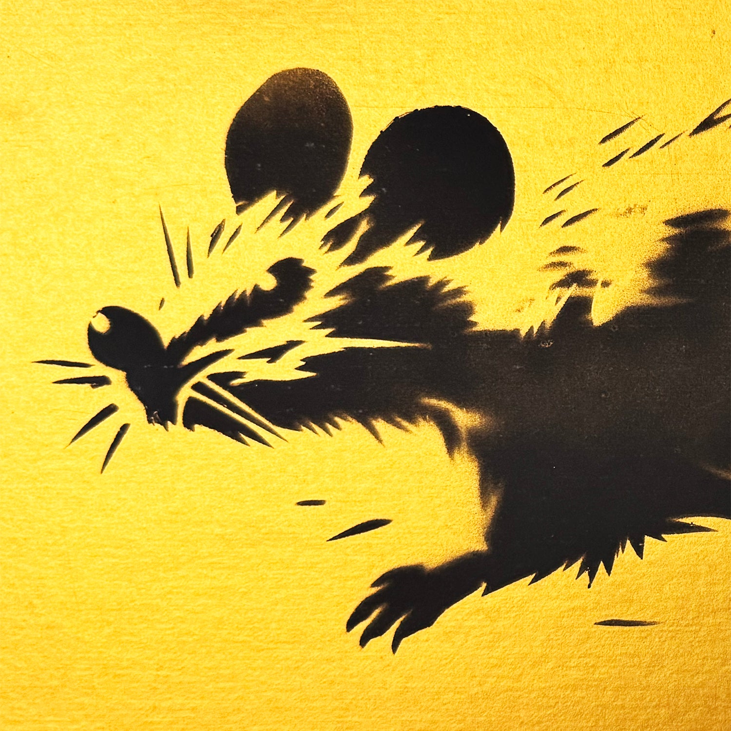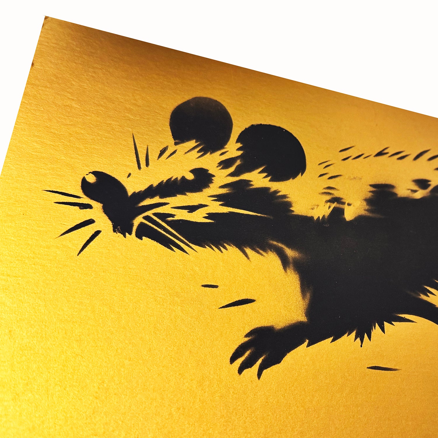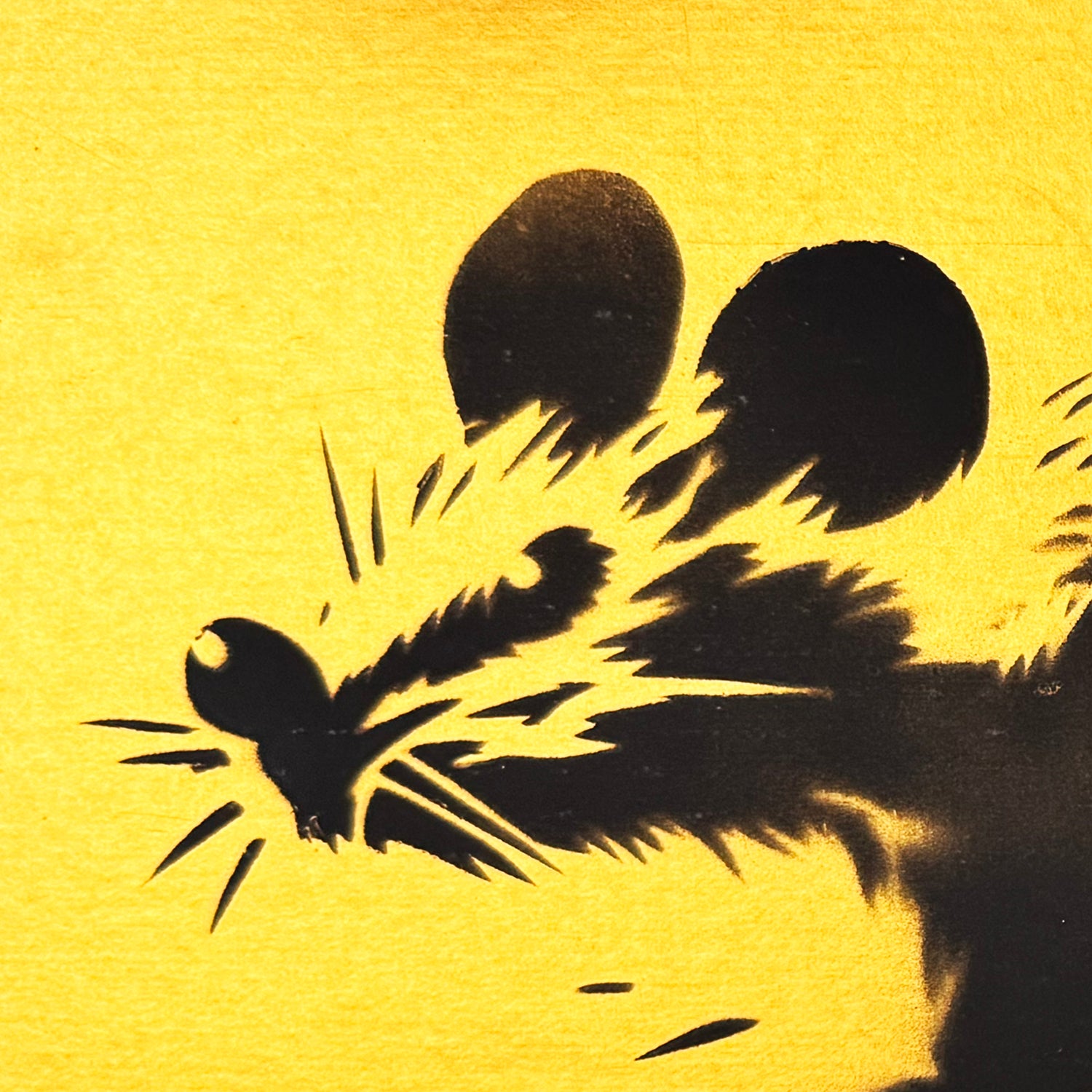 Unique 1/1 on cardboard of Gillette's rat character made famous at artist Banksy's "Dismaland" installation.