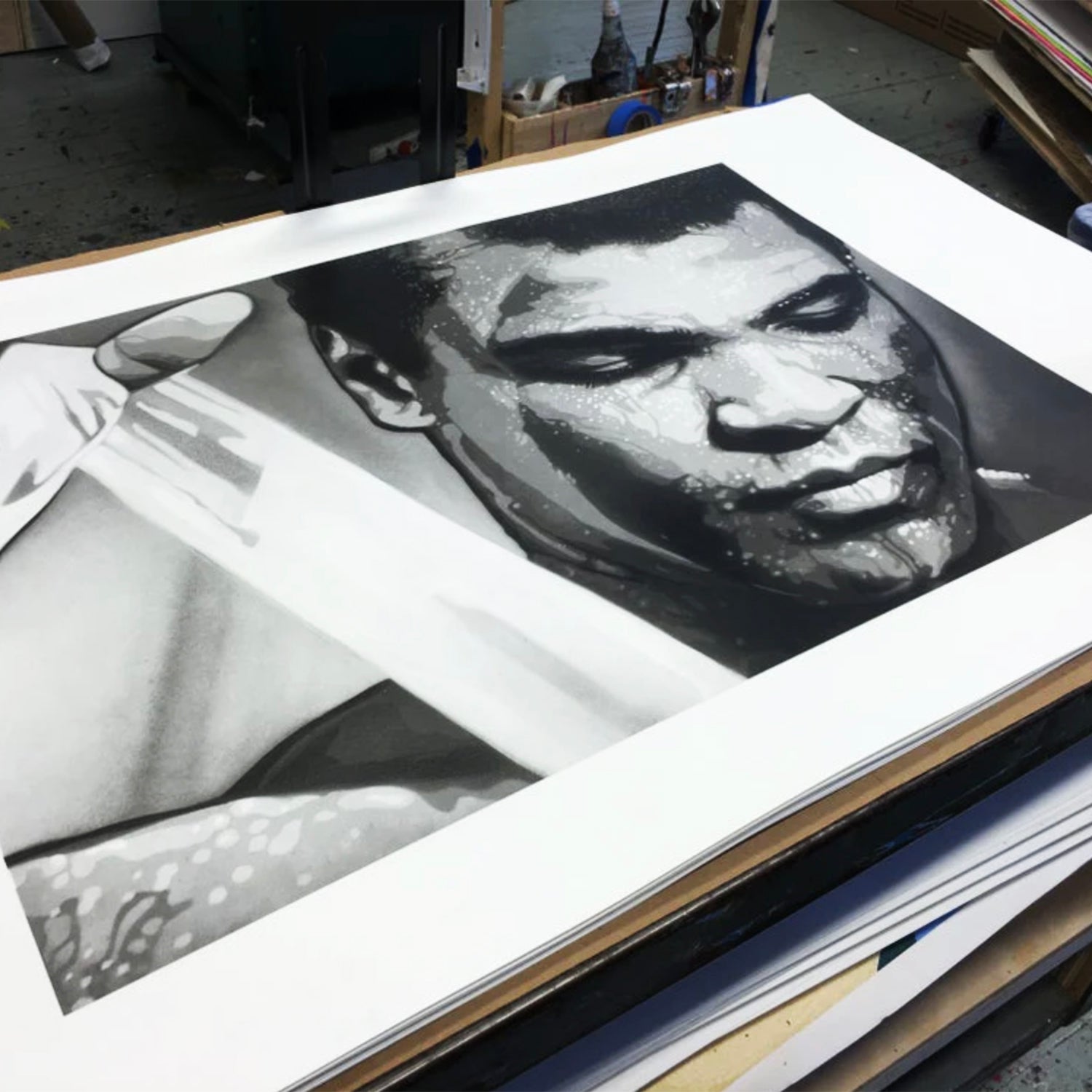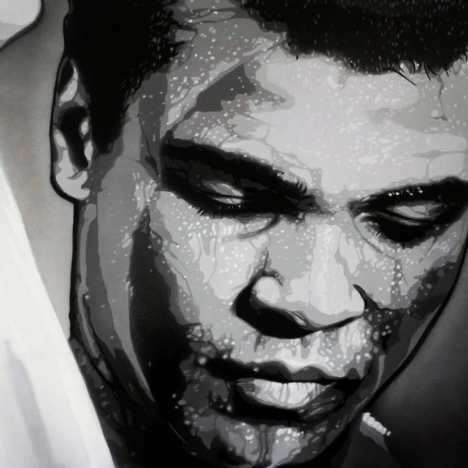 Based on the artist's spray paint + stencil original artwork for "Ali: The Greatest" Group Art Show.