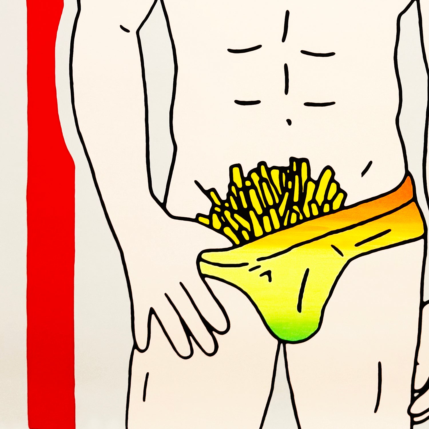 Flipping a global icon on its head—blending satire and pop culture into a commentary on consumerism.