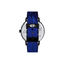 Stainless steel case with blue face feat. the artist's 'Greaper' figure.