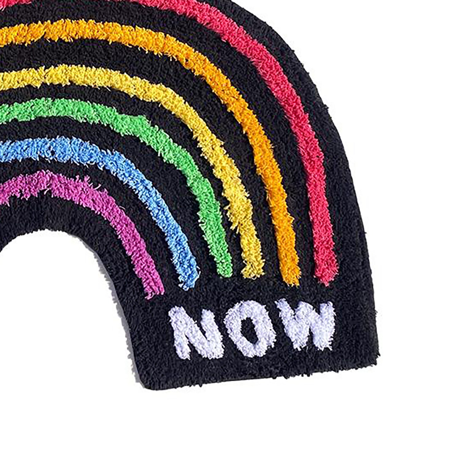 Shaggy cotton/polyester mix rug in colorful rainbow design.